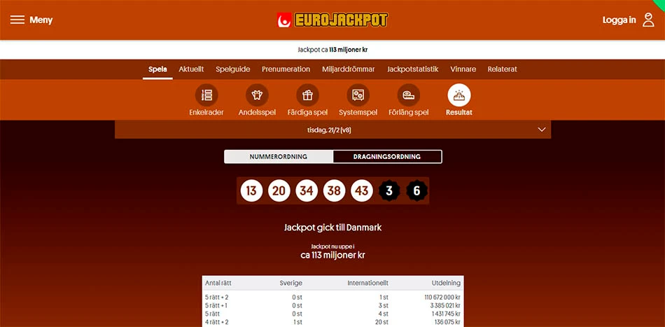 Beräkning av vinster i Eurojackpot hos Svenska Spel